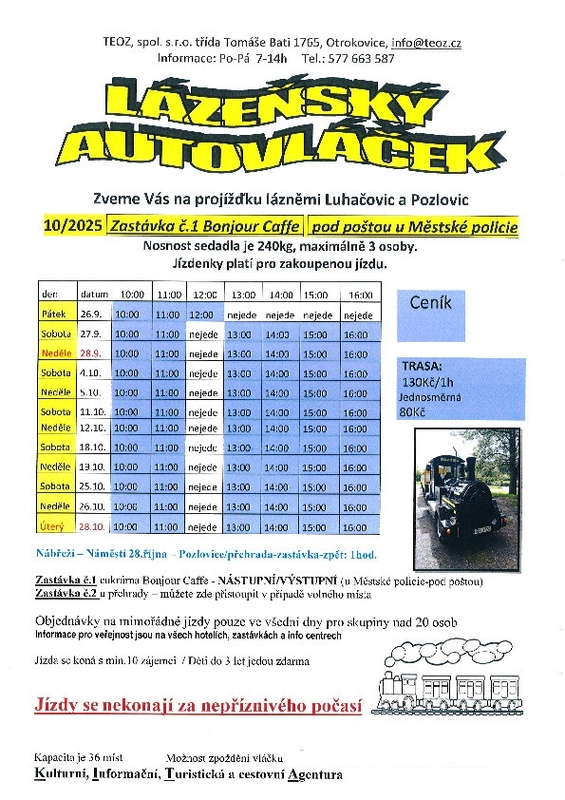 Nutná rezervace předem info@luhacovice.eu, 577133980