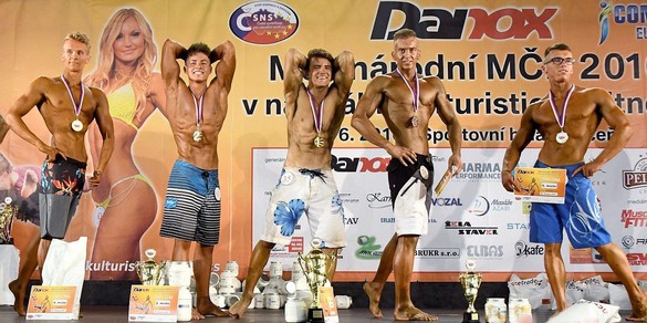 Nejlepší v kategori Mr. Physique Junior na mistrovství v Chocni: Od leva s uvedením umístění: 4. Ondřej Pekárek, 2. Štepán Polák, 1. Pavel Machů, 3. Radek Sedlák, 5. Štěpán Polák. (foto: www.muscle-fitness.cz)