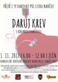"Darování krve se pomalu blíží... Tentokrát to bude velmi pestré. Těšit se můžete na hráče z klubu Zlin Golems, podpoří nás také Muzeum jihovýchodní Moravy ve Zlíně a Radio Kiss. Podpořit nás také přijdou dobrovolní a profesionální hasiči ze Zlínského kraje. A to není vše...už brzy odtajníme další informace! Sledujte nás a přijďte s námi darovat krev už 1. 11. 2017," vyzývá na svém facebooku Korunka Luhačovice.