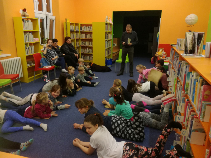 Je jasné, že bez her a soutěžení by celá akce neproběhla, ale největší úspěch měla asistenční fenka Bella, která pod vedením paní Daniely Kuncové předvedla, jak se dokáže postarat o druhé a co zvládá v rámci agility. Rozdováděné děti zklidnilo čtení strašidelné pověsti v podání našeho hosta, bez něhož se tato akce již léta neobejde, Mgr. Romana Leblocha. Program byl obohacen i setkáním se spisovatelkou Janou Hochmanovou a čtením úryvku z její knihy Samé krásné věci.