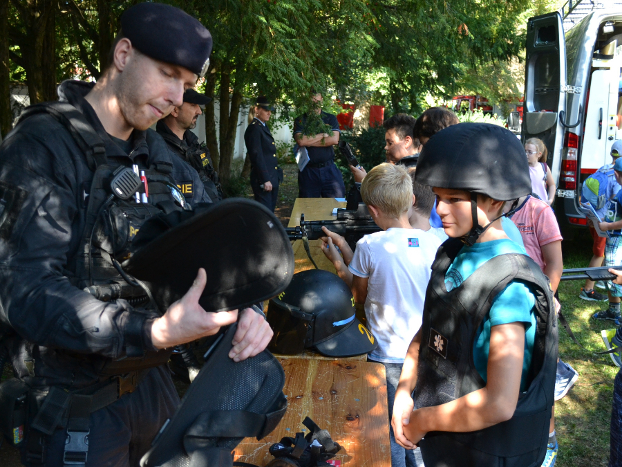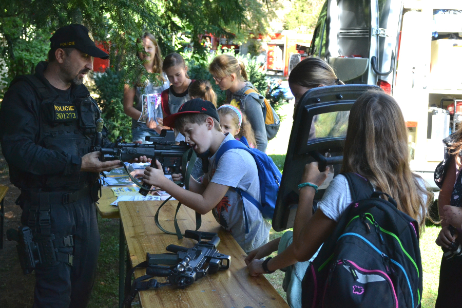 Na akci opět dorazily obdivovat práci IZS se svými pedagogy žáci luhačovické základky i děti z místní mateřinky, ale také široká veřejnost. Představili se jim policejní psovodi se svými čtyřnohými pomocníky, jízdní složka Policie ČR se služebními koňmi a také zásahová jednotka, která předvedla zadržení pachatele. Hasiči pak ukázali komentované vyproštění osoby během zásahu u simulované dopravní nehody, při které auto narazilo do stromu a řidič zůstal zaklíněn nohama ve voze. Příchozí si také mohli prohlédnout vybavení zásahové jednotky PČR, sanitku Zdravotnické záchranné služby Zlínského kraje, vůz Městské policie Luhačovice nebo policejní motocykl. Na akci organizované DDM Luhačovice se ale představili také mladí hasiči z kroužku DDM a také klub agility fungující při DDM.