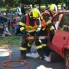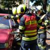 K vidění bylo vyproštění figuranta z havarovaného vozu i policejní koně a zásahovka