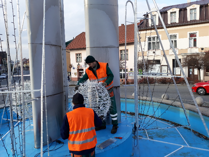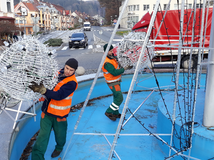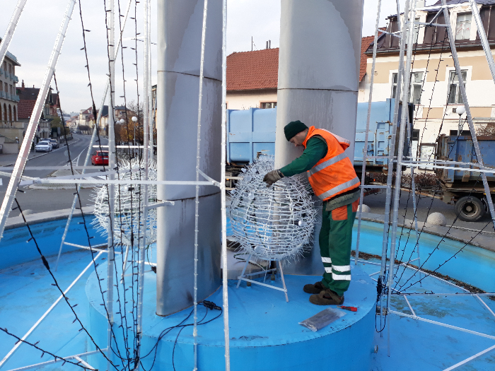 Začít museli s dostatečným předstihem, protože vyzdobení ulic svítícími ozdobami zabírá několik týdnů. Třeba v úterý 13. listopadu instalovali svítící ozdoby na kruhový objezd na náměstí 28. října. Střed kruháče, kde přes léto oku ladí vodotrysk, budou zdobit nejen světelné komponenty připomínající právě tryskající vodu, ale také vloni nově pořízené ozdoby velké kulovité ozdoby. Kromě toho byly před minulými Vánocemi pořízeny i nové ozdoby pro ulici Dr. Veselého. Jak podotknul ředitel TS Luhačovice Josef Pučalík, letos se nová výzdoba sice nekupovala, ovšem i tak jí bude ve městě více. "Opravily se totiž některé ze starších kusů výzdob umisťovaných na sloupy veřejného osvětlení. Díky tomu se podaří nově vyzdobit také většinu ulice Nádražní vedoucí od kostela k zámku. Instalace v těchto místech ale není jednoduchá, protože vánoční osvětlení tu bude poprvé a na sloupech se kvůli tomu musejí dělat nové zasuvky," informoval Pučalík. Každopádně ještě čeká na pracovníky TS spousta práce s nastrojením vánočního stromu. Tím bude jako v předchozích letech vzrostlý živý smrk na náměstí před radnicí. Ozdobí jej hvězda, světelné řetězy a červené baňky, které byly nakoupeny před Vánoci 2015. Rozsvícenou výzdobu si lidé budou moci užít až s přicházejícím adventem. Strom se rozzáří tradičně až závěrem Vánočního jarmarku, který se uskuteční 7. prosince.