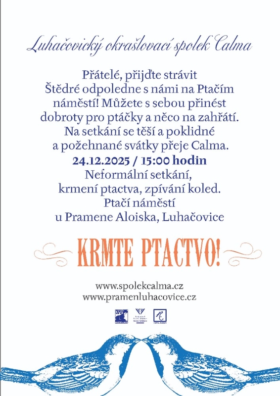 Luhačovický Okrášlovací spolek Calma zve znovu na setkání přátel ptactva na Ptačím náměsí u pramene Aloiska.