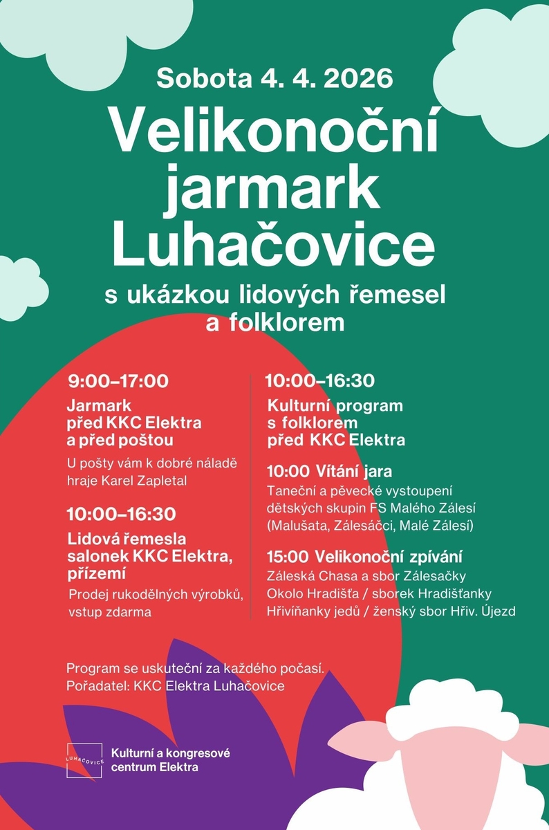 Velikonoční jarmark bude i v letošním roce probíhat na ulici Dr. Veselého (před poštou) ale také před a v budově KKC Elektra s předváděním lidových řemesel.