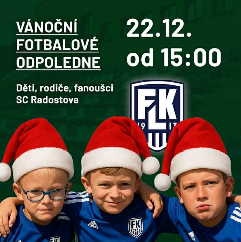 Srdečně Vás zveme na pohodové odpoledne plné fotbalu, vánoční atmosféry a zábavy pro děti i dospělé!