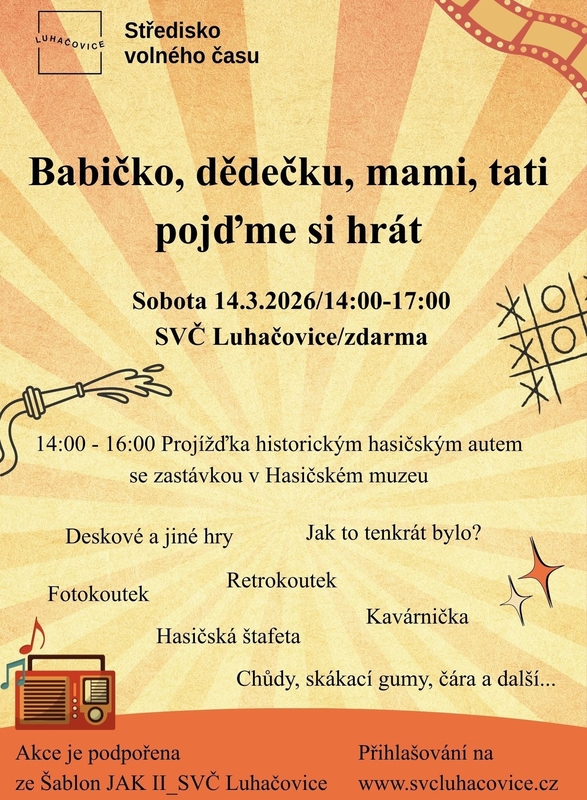 Přijďte si pohrát, pobavit se s kamarády i rodinou a užít si příjemné odpoledne.