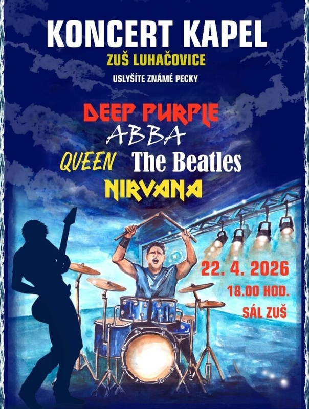 Srdečně Vás zveme na koncert kapel ve středu 22. dubna 2026 v 18 hodin v sále školy.